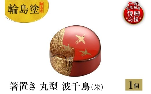 輪島塗 箸置き 丸型 波千鳥(朱)