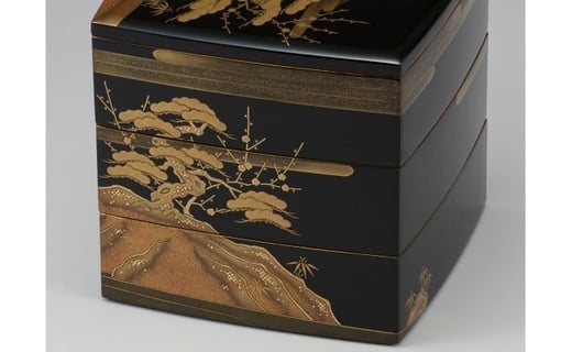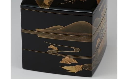 輪島塗 三段重(蓬莱蒔絵、平台付)