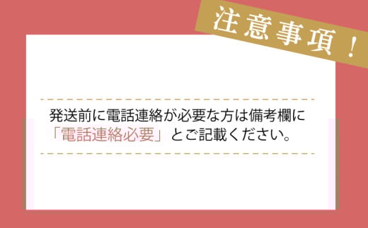 ※発送前に電話連絡が必要な方は備考欄に「電話連絡必要」とご記載ください。