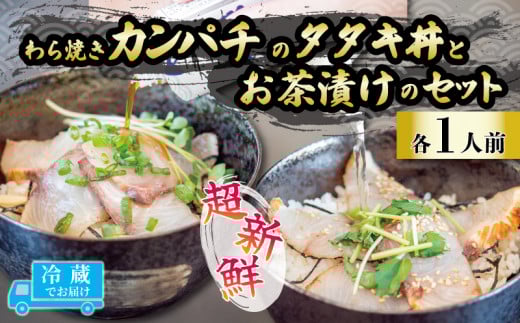 藁焼きカンパチのタタキ丼・カンパチの藁焼きタタキのお茶漬けセット 1人前 勘八 カンパチ 産地直送 刺身 たたき 漬け丼 お茶漬け 茶漬け 漬け 高知 藁焼き わら焼き 真空パック 新鮮 冷蔵 生 魚 鮮魚 高知県産 須崎市 IRY004