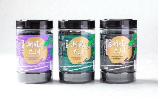 厳選した福岡有明海産の海苔を3種類の卓上容器にてお届け。