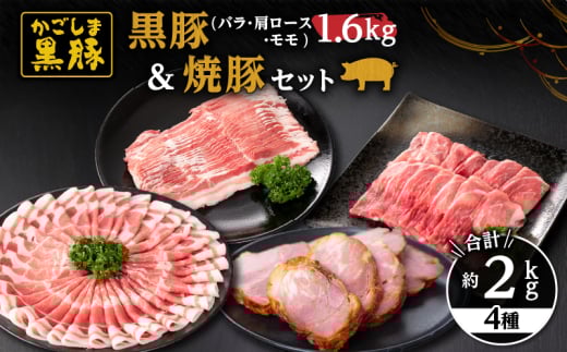 51025 鹿児島黒豚1.6kg(バラ・肩ロース・モモ)+黒豚焼豚 黒豚 豚肉 しゃぶしゃぶ 焼豚 バラ モモ 肩ロース 鹿児島 和田養豚 KN038-008