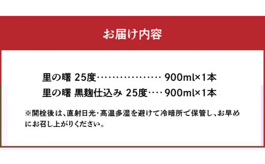 奄美黒糖焼酎 里の曙(三年貯蔵&黒麹仕込)25度 900ml瓶×各1本 計2本セット A002-020