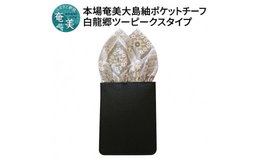 【ギフト用】本場奄美大島紬ポケットチーフ 白龍郷柄 ツーピークスタイプ A018-006