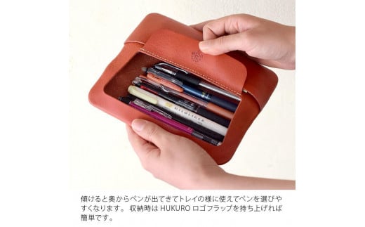 ペンケース-tray- HUKURO 栃木レザー 全6色【ブラック(黒糸)】【雑貨 日用品 人気 おすすめ 】