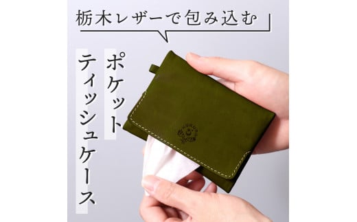 【グリーン】ポケットティッシュケース HUKURO 栃木レザー