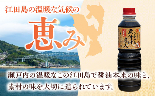 160年続く江田島の老舗醤油屋『濱口醤油』の看板商品の特級本醸造『玉萬寿(たまます)醤油』をベースに、砂糖・お酒・かつお・昆布などを調合した『さかなの煮付け名人』500mlを3本セットでお届けします。