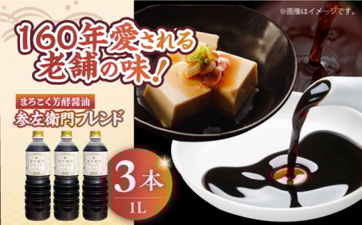 まろこく芳酵醤油 参左衛門ブレンド 1L×3本セット 醤油 うす塩 健康 濃口 和食 醤油 しょう油 しょうゆ お醤油 セット 詰め合わせ 調味料 大豆 発酵食品 刺身 煮物 だし だし醤油 出汁醤油 出汁 濃口 濃い口 こいくち 安心 安全 手作り コク 旨味 国産 料理 グルメ 保存 リピート ギフト 人気 高品質 好評 広島県産 江田島市/濱口醤油 [XAA077]