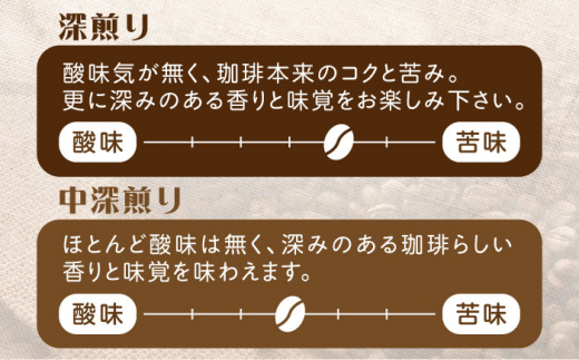・中深煎り…ほとんど酸味は無く、珈琲本来のコクと苦みが中心。深みのある珈琲らしい香りと味覚を味わえます。