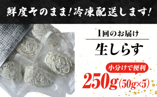 【全6回定期便】生しらす 50gX5個 冷凍 しらす シラス 干し 釜揚げ 小分け 魚介類 鮮魚 ギフト 料理 レシピ シラス丼 しらす丼 海鮮丼 生 生産地 おつまみ ご飯のお供 グルメ やみつき 旬 国産 広島県産 リピート ギフト プレゼント 贈答 人気 高品質 好評 保存方法 江田島市/三島水産株式会社 [XCN012]