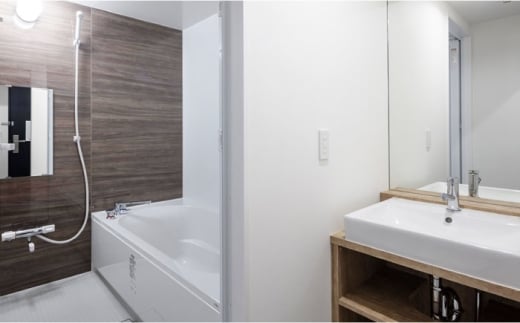 共有レストエリアにはランドリー設備とキッチンがあり、ビジネスや観光での利用に最適。