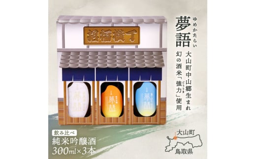 純米吟醸酒 夢語 300ml×1、純米吟醸酒 夢語 生しぼり 300ml×1、純米吟醸酒 夢語(3年熟成)300ml×1
