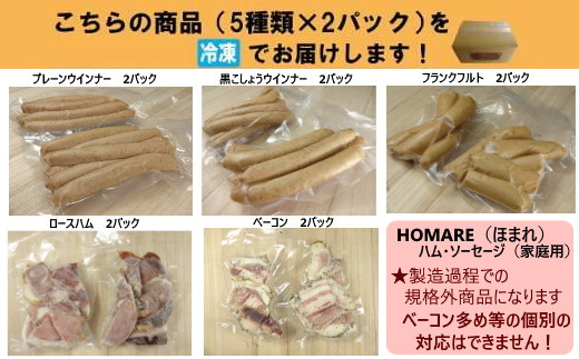 大人気!HOMARE(ほまれ)ハム・ソーセージの10パックの5回定期便コースです