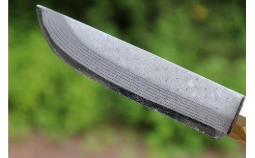 土佐渓流ナイフ105 真鍮丸輪 全曇 ダマスカス15層青紙2号鋼 | ナイフ キャンプ アウトドア 打刃物 土佐 鉈 剣鉈 なた 職人 山林 狩猟 熊 刃物 薪割り ハンドメイド 釣り 伝統 工芸 高知県 南国市