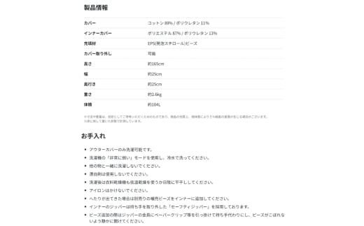※新品のYogiboは、新しいビーズ特有の科学的なにおいがすることがありますが、人体に害のあるもの ではございません。通常、数日~1ヶ月ほどでにおいはなくなりますが、においが 気になる場合は風通しの良い場所にしばらく置いてください。