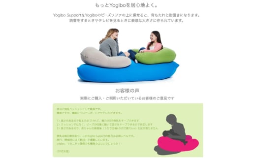 ※新品のYogiboは、新しいビーズ特有の科学的なにおいがすることがありますが、人体に害のあるもの ではございません。通常、数日~1ヶ月ほどでにおいはなくなりますが、においが 気になる場合は風通しの良い場所にしばらく置いてください。