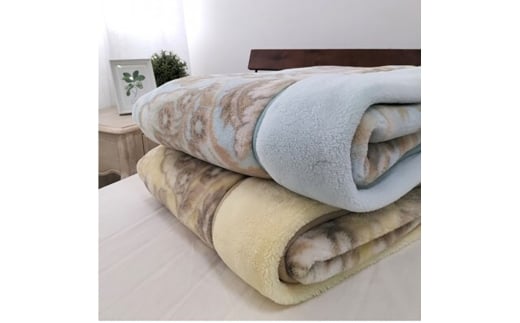※画像はイメージです。お届けするのは2枚合わせ毛布(シングルサイズ140×200cm)2枚組 ×1セット(ベージュ1枚・グリーン1枚)です。