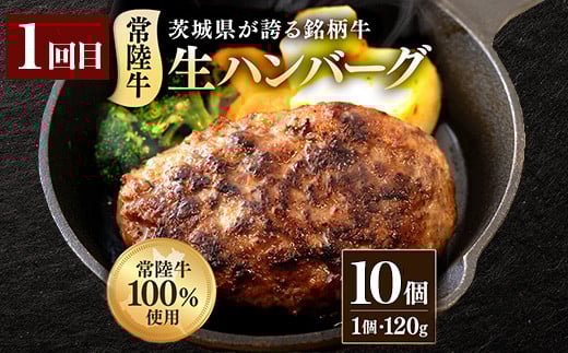 1回目:【常陸牛】100%生ハンバーグ1.2kg(120g×10個)