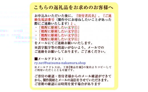紫尾の露4500ml瓶にご希望の文字を彫刻いたします。