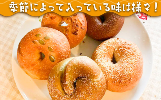 【4回定期便】 三重県産小麦使用 自家製天然酵母のおまかせベーグルセット / パン ベーグルパン ベーグル 国産小麦 / 亀山市 / くるくる・ベーグル [AMAT011]