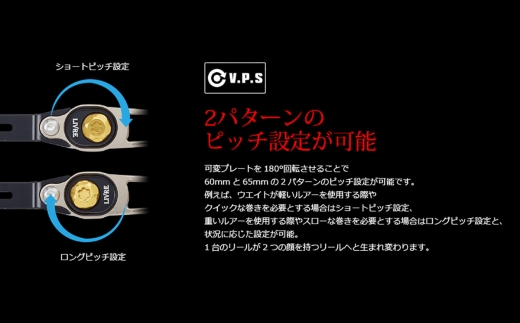 例えば、ウエイトが軽いルアーを使用する際や、クイックな巻きを必要とする場合はショートピッチ設定、重いルアーを使用する際やスローな巻きを必要とする場合はロングピッチ設定と、状況に応じた設定が可能。