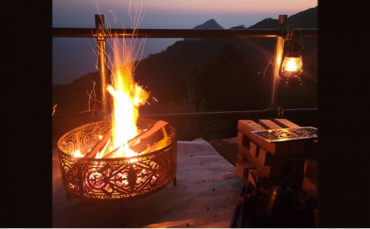 金属に細かい肉抜き加工を施すことにより、どこか懐かしささえ感じる陰影が焚き火に照らし出され、日常の喧騒から飛び出して、非日常へいざなってくれることでしょう。