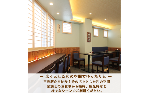 三島駅南口より徒歩1分の広々とした 和の空間で、ゆっくりとお楽しみ下さい。