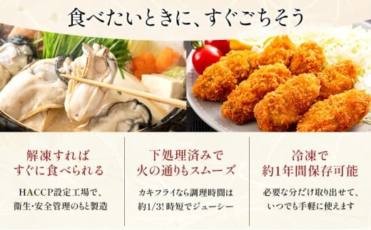 牡蠣は特許製法で蒸して冷凍された状態でお届け致します。1年中いつでも新鮮。解凍後そのままでもお召し上がり頂けます。もちろんいつもの調理にも。どうぞお召し上がりください。