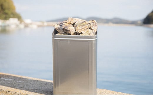 炭火焼きも楽しめる殻付き牡蠣を一斗缶詰めにしてお届けします。