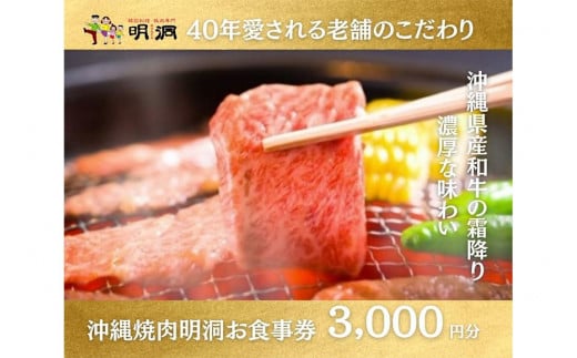 沖縄で本格焼肉!焼肉明洞(みょんどん)お食事券 3,000円分|沖縄県 浦添市 肉 牛肉 焼肉 バーベキュー お肉 にく 食品 人気 ギフト 焼肉券 お食事券 焼肉明洞