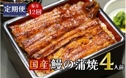 【定期便】全12回コース 蒲焼割烹うな繁 特選国産うなぎ蒲焼真空パック4人前