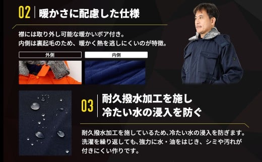 7. No.1034-06 【-30℃に耐える】冷凍倉庫用防寒コート7300(ネイビー/5L) / ロングセラー商品 高級 中綿シンサレート 保温性 フード 起毛 暖かい 広島県