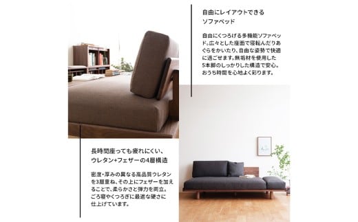 自由にくつろげて、幅広い使い方ができるソファベッドです。スペースが限られたお部屋に置いても圧迫感のない、コンパクトな作り。それでいて座面はゆったりと広く、足を伸ばしてごろんと寝転んだり、あぐらをかいたりと好きな姿勢で過ごせます。休息はもちろん在宅ワークや趣味の時間も、PISOLINOのソファベッドがすべての“おうち時間”をぐっと心地よいものにしてくれます。フレームや木脚は、ナチュラルかつ高級感のある無垢材で製作、5本の木脚が座面をしっかり支える構造で、お子様やペットが飛び乗っても安心です。生地は10数種類からお選びいただけます。