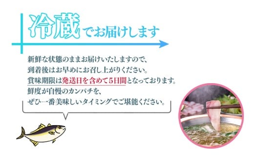 朝水揚げした最高級のかんぱちを活き〆で処理、真空パックで美味しさを閉じ込めました。