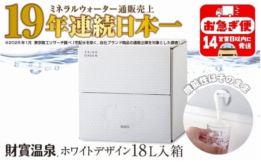 W-22198/天然アルカリ温泉水 財寶温泉 ホワイトデザイン 18L
