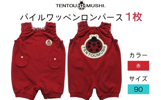 TENTOUMUSHI パイルワッペンロンパース・赤・90サイズ|子供 服 赤ちゃん ベビー スナップ 釦 ボタン 肩ひも 綿 国産 日本製 お祝い てんとう虫 [0808]