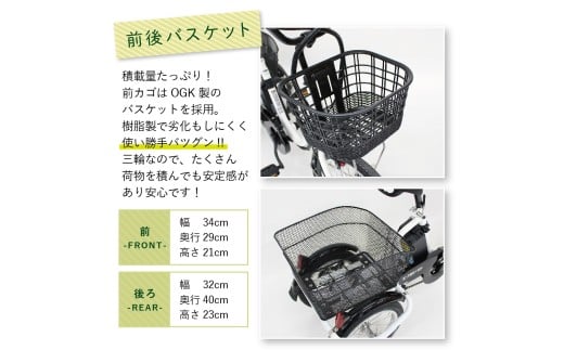 ●カゴサイズ:前カゴ約W41×D32.5×H24cm、後カゴ約W38×D43×H25cm