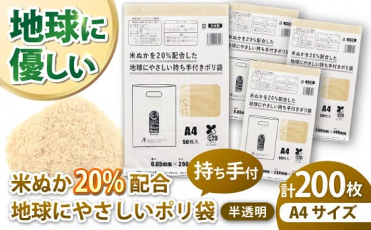 【ビニール袋】ポリ袋で始めるエコな日常!米ぬかを20%配合した地球にやさしい持ち手付き袋 A4サイズ 50枚入り 4冊セット 愛媛県大洲市/日泉ポリテック株式会社 [AGBR087]おすすめ 人気 お取り寄せ 送料無料 日用品 消耗品 生活雑貨 ストック 備蓄 ビニール袋 マチなし 手渡し用 手提げ 無地 シンプル パンフレット カタログ 説明会 資料配布用 ホワイト 乳白色 ノベルティ エコ