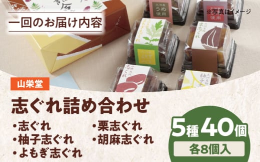 【1回のお届け内容】志ぐれ(4個入)、柚子志ぐれ(4個入)、よもぎ志ぐれ(4個入)、栗志ぐれ(4個入)、胡麻志ぐれ(4個入)