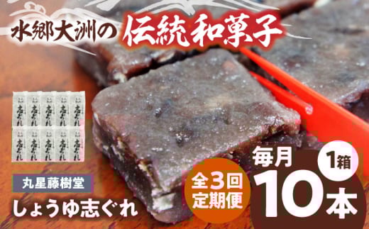 郷土菓子 志ぐれ【全3回定期便】日本の伝統と文化を伝える和菓子 丸星藤樹堂の「しょうゆ志ぐれ」【毎月1箱/10本入】/大洲市物産協会 /大洲市物産協会 [AGBM062] おやつ おかし お菓子 和菓子 スイーツ デザート お茶菓子 ティータイム 銘菓 名産品 志ぐれ しぐれ おすすめ 人気 お取り寄せ 送料無料 贈答 ギフト