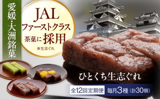 【全12回定期便】大洲銘菓 ひとくち生志ぐれ 3種30個入り ギフト箱入り 愛媛県大洲市/有限会社冨永松栄堂 和菓子 おやつ 茶菓子 お茶請け ギフト [AGCB022] おやつ おかし お菓子 和菓子 スイーツ デザート お茶菓子 ティータイム 銘菓 名産品 志ぐれ しぐれ おすすめ 人気 お取り寄せ 送料無料 贈答 ギフト