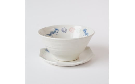 手描き龍の麺鉢、八角皿ペアの作品です。
