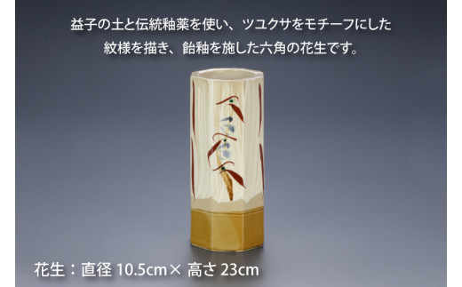 益子焼 ツユクサ 六角 花生 てづくり