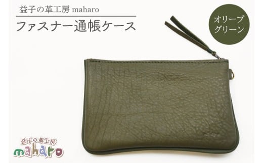 益子の革工房maharoのファスナー通帳ケース オリーブグリーン|栃木県 益子町 ふるさと納税 ファスナー通帳ケース 牛革 手作り(AX139-6)