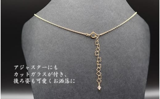 花をモチーフにしたデザインチェーンとカットガラスがポイント
