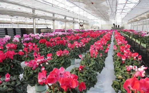 北上市内にあるお花の生産者が丁寧に育てたシクラメンです