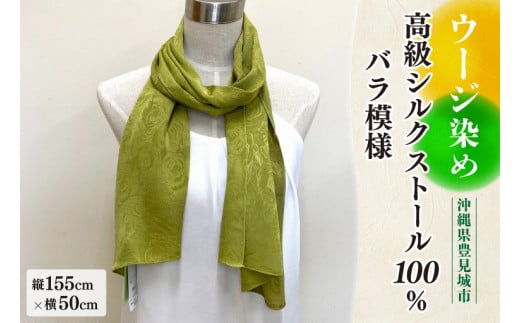 ウージ染め高級シルクストール100%<バラ模様>(AI046)