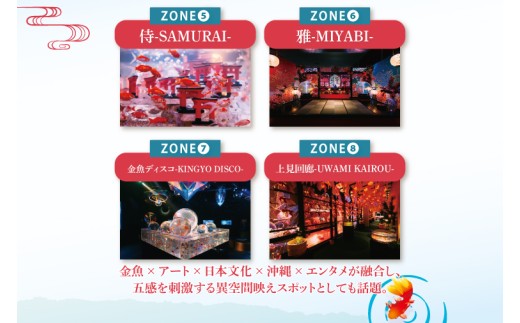 約2,000匹の金魚が、光とガラスが織りなすアート空間で幻想的に舞います。