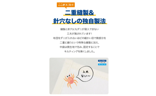 縫製を細かい目で二重にすることで縫製部分からもダニは侵入しません。