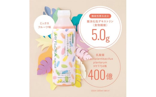 マイ・フローラサラダは1杯(100ml)で生きた植物乳酸菌が400億摂取。生きた植物乳酸菌のチカラでおなかの変化をご実感いただければ嬉しい限りです。